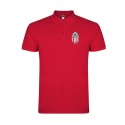 Polo uomo manica corta. Copri cuciture rinforzate sul colletto. Collo e giromaniche a costine 1x1. Cuciture laterali. Chiusura 3 bottoni. Aperture laterali.